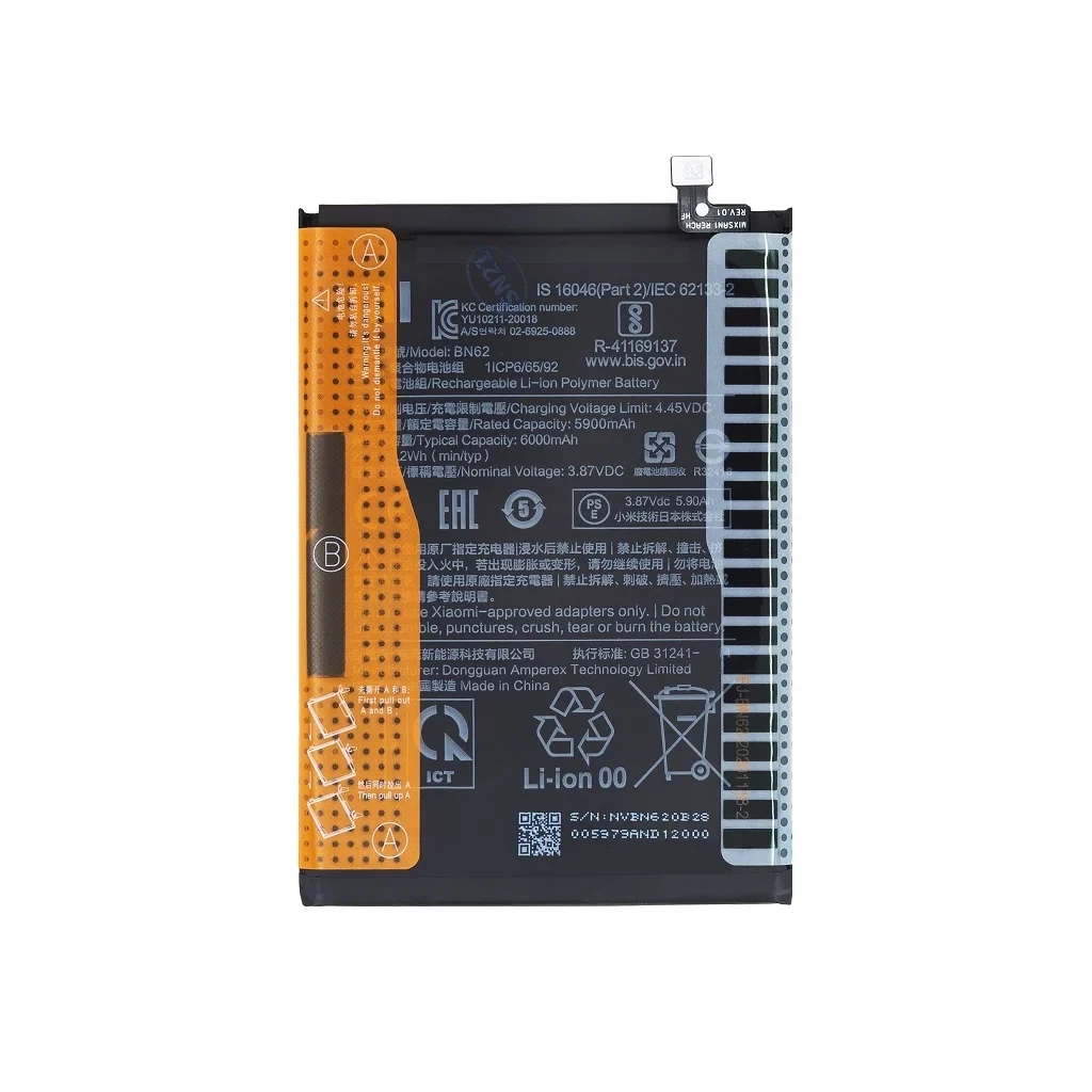 ظرفیت 6000 میلیآمپر ساعت، مهمترین مشخصه باتری BN62 برای گوشی Xiaomi Redmi 9T است. این ظرفیت بالا، به کاربر اجازه میدهد تا برای مدت طولانیتری بدون نگرانی از اتمام شارژ، از قابلیتهای گوشی خود مانند تماشای ویدئو، بازی کردن و استفاده از شبکههای اجتماعی لذت ببرد. نوع باتری لیتیوم-یون نیز بهرهوری انرژی را افزایش داده و به دوام بیشتر آن در طول سیکلهای شارژ و دشارژ کمک میکند.