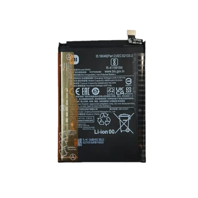ظرفیت 5000 میلیآمپر ساعت باتری پوکو M4، آن را در دسته باتریهای با ظرفیت بالا قرار میدهد و به کاربران اجازه میدهد تا برای مدت زمان طولانیتری بدون نیاز به شارژ مجدد از گوشی خود استفاده کنند. نوع باتری لیتیوم-یون، به دلیل ایمنی و پایداری، گزینه ایدهآلی برای این مدل گوشی است. ولتاژ خروجی 3.85 ولت نیز نشاندهنده سازگاری کامل باتری با سختافزار گوشی است.